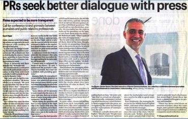Samer is a true professional and an outstanding public relations consultant for any company looking to navigate the Middle East. Knowledgeable, professional and perhaps most of all, patient, Samer takes the time to help his clients and partners understand the nuance of communications strategy in the region. I've worked with him for several years and he comes with my highest recommendation.
